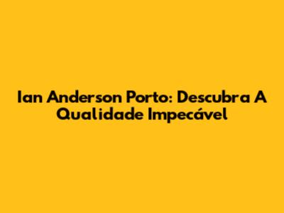 Ian Anderson Porto: Descubra A Qualidade Impecável