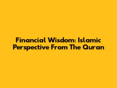 Financial Wisdom: Islamic Perspective From The Quran