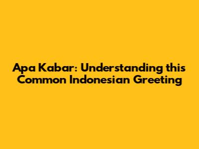 Apa Kabar: Understanding This Common Indonesian Greeting