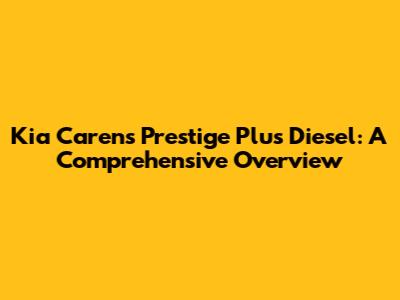 Kia Carens Prestige Plus Diesel: A Comprehensive Overview