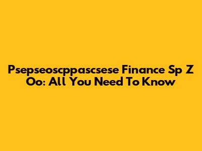 Psepseoscppascsese Finance Sp Z Oo: All You Need To Know