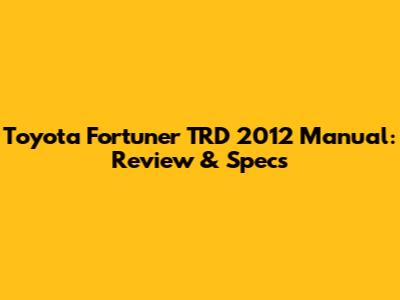 Toyota Fortuner TRD 2012 Manual: Review & Specs