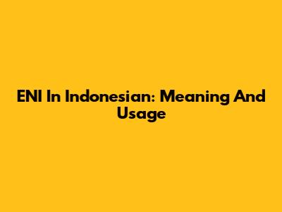ENI In Indonesian: Meaning And Usage