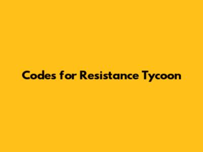 Codes For Resistance Tycoon