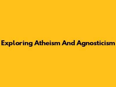 Exploring Atheism And Agnosticism