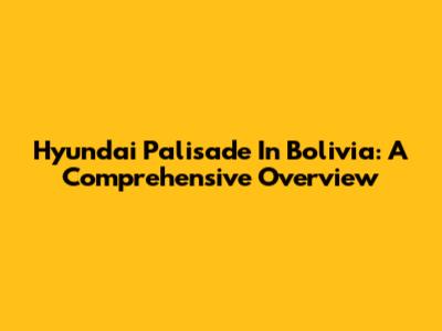 Hyundai Palisade In Bolivia: A Comprehensive Overview