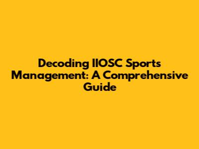 Decoding IIOSC Sports Management: A Comprehensive Guide