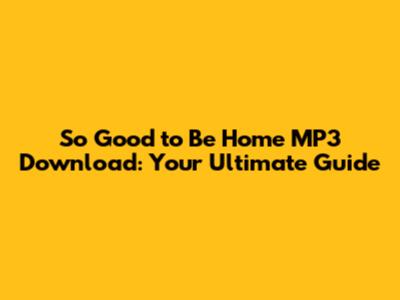 Safe Downloading: Tips and Tricks for Your "So Good to Be Home" MP3
