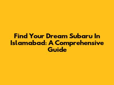 Find Your Dream Subaru In Islamabad: A Comprehensive Guide