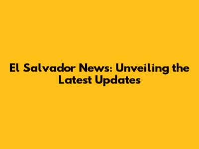 El Salvador News: Unveiling The Latest Updates