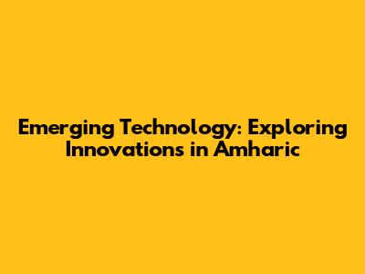 Key Emerging Technologies Explained in Amharic