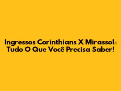 Ingressos Corinthians X Mirassol: Tudo O Que Você Precisa Saber!