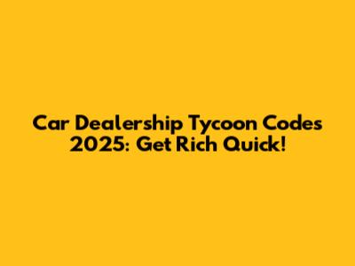 Car Dealership Tycoon Codes 2025: Get Rich Quick!