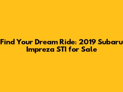 Hey car enthusiasts! Are you on the hunt for a high-performance, head-turning ride? Well, if you're looking for a 2019 Subaru Impreza STI for sale, you've come to the right place. This article is your ultimate guide to finding your dream car. We'll dive deep into what makes the 2019 STI so special, where to find them, and what to look out for when you're ready to make your purchase. Buckle up, guys, because we're about to embark on a journey through the thrilling world of the 2019 Subaru Impreza STI!