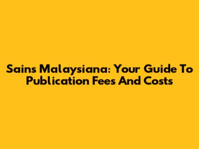 Sains Malaysiana: Your Guide To Publication Fees And Costs