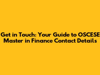 Why Contacting the OSCESE Master in Finance Team is Crucial