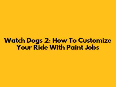 Watch Dogs 2: How To Customize Your Ride With Paint Jobs