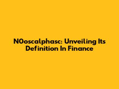 N0oscalphasc: Unveiling Its Definition In Finance