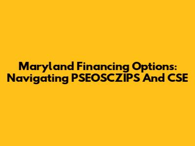 Maryland Financing Options: Navigating PSEOSCZIPS And CSE