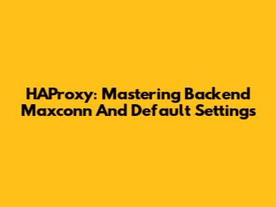 HAProxy: Mastering Backend Maxconn And Default Settings