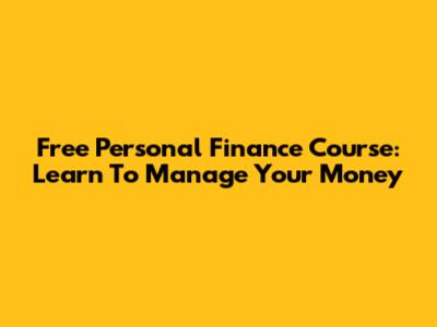 Free Personal Finance Course: Learn To Manage Your Money