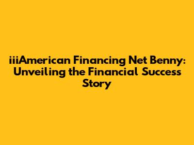 Hey guys! Ever wondered about the financial wizardry behind iiiAmerican Financing, especially when it comes to figures like Benny? Well, buckle up because we’re diving deep into the world of iiiAmerican Financing and trying to uncover the net worth of key players like Benny. This isn't just about numbers; it's about understanding the success stories and the financial strategies that drive companies forward. So, let’s get started and demystify some of the financial aspects surrounding iiiAmerican Financing and its prominent personalities.