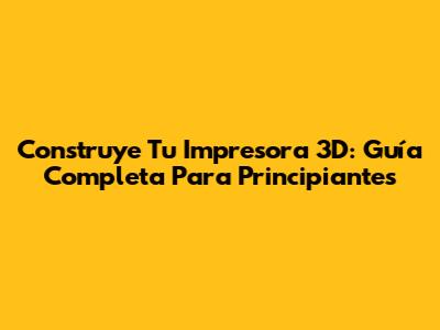 Construye Tu Impresora 3D: Guía Completa Para Principiantes
