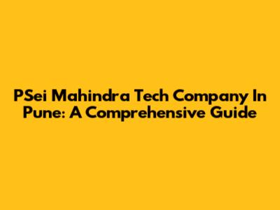 PSei Mahindra Tech Company In Pune: A Comprehensive Guide