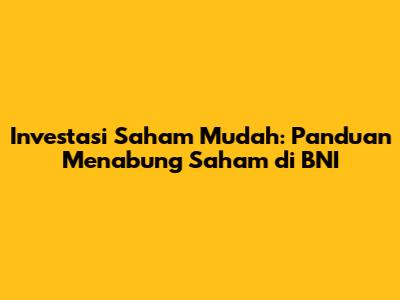 Investasi Saham Mudah: Panduan Menabung Saham Di BNI