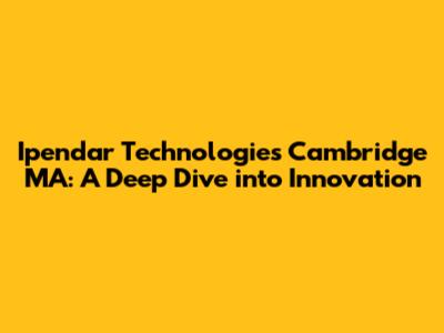Hey there, tech enthusiasts! Let's dive deep into the world of Ipendar Technologies in Cambridge, MA. This isn't just a company; it's a hub of innovation, a place where cutting-edge ideas come to life. In this article, we'll explore what makes Ipendar tick, from its core values to its groundbreaking projects and its impact on the tech landscape. Get ready for an exciting journey into the heart of technological advancement!