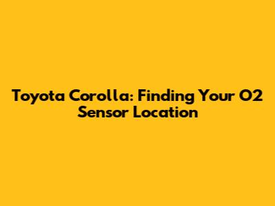 Toyota Corolla: Finding Your O2 Sensor Location