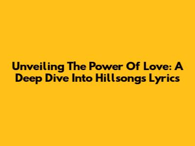 Unveiling The Power Of Love: A Deep Dive Into Hillsong's Lyrics