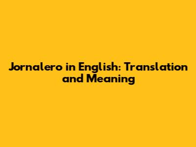 Jornalero In English: Translation And Meaning