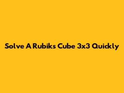 Solve A Rubik's Cube 3x3 Quickly