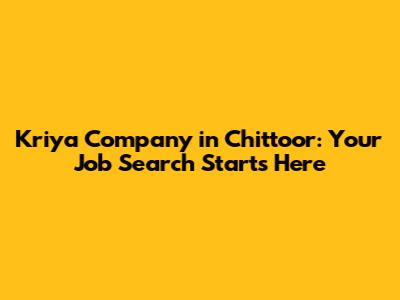 Hey there, job seekers! Are you on the hunt for a fantastic opportunity with Kriya Company in Chittoor? You've come to the right place! Finding the perfect job can be a real rollercoaster, but don't worry, we're here to help you navigate the process. We'll dive into everything you need to know about Kriya Company, potential job openings, and how to snag that dream role. Let's get started, shall we?