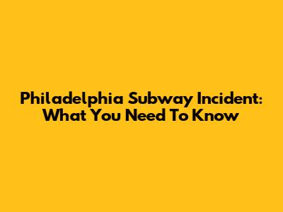 Philadelphia Subway Incident: What You Need To Know
