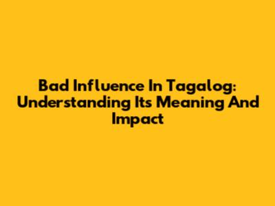 Bad Influence In Tagalog: Understanding Its Meaning And Impact