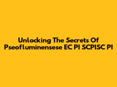 Unlocking The Secrets Of Pseofluminensese EC PI SCPISC PI