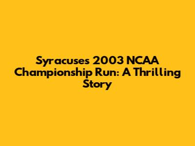 Syracuse's 2003 NCAA Championship Run: A Thrilling Story