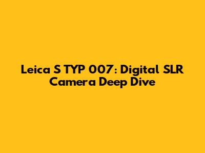 Leica S TYP 007: Digital SLR Camera Deep Dive