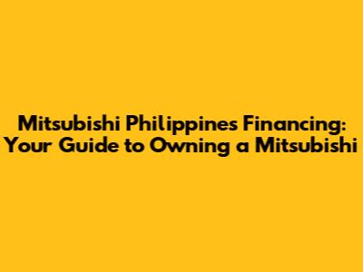 Mitsubishi Philippines: Your Guide To Car Financing