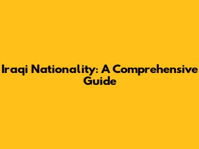 Iraqi Nationality: A Comprehensive Guide