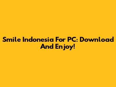 Smile Indonesia For PC: Download And Enjoy!
