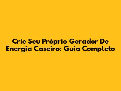 Crie Seu Próprio Gerador De Energia Caseiro: Guia Completo