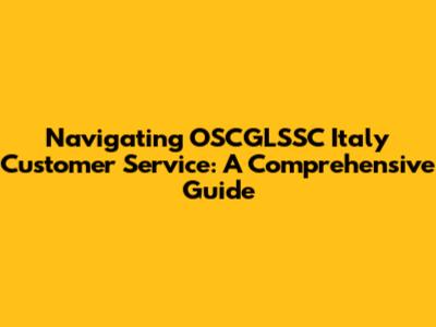 Navigating OSCGLSSC Italy Customer Service: A Comprehensive Guide