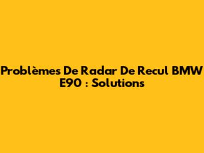 Problèmes De Radar De Recul BMW E90 : Solutions