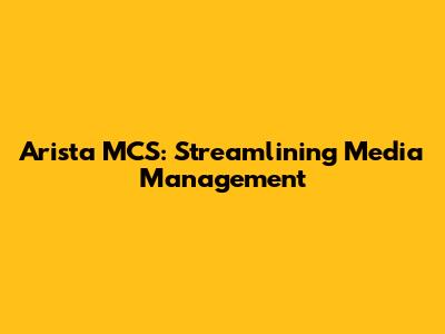 Arista MCS: Streamlining Media Management