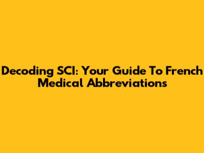 Decoding SCI: Your Guide To French Medical Abbreviations