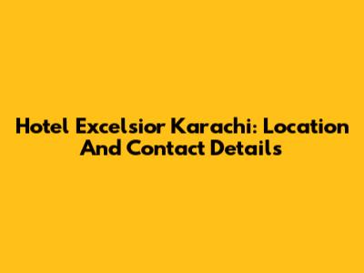 Hotel Excelsior Karachi: Location And Contact Details