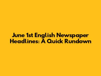 June 1st English Newspaper Headlines: A Quick Rundown